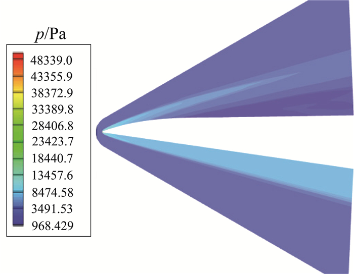 控制方程为时均N-S方程,在空间方向采用二阶迎风格式离散,时间项采用显示格式,采用标准k-ε湍流模型,在利用Pointwise软件进行网格划分时,可同时完成对边界条件类型的指定。对于压力远场条件,来流参数见表 2。壁面处按等温、无滑移处理,壁面温度设为1000 K。此外,文献[22, 23]指出乘波构型升阻比在正的小迎角下达到最大,故飞行迎角选取为2°。