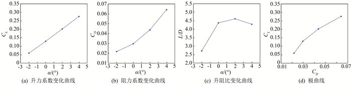 表 4为经给定容积空间设计的前缘钝化乘波构型飞行器的气动力系数随迎角(-2°、0°、2°、4°)的变化数据。