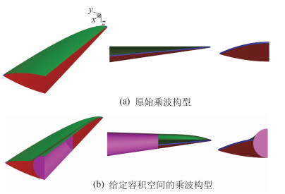 图 5 给定容积空间设计的乘波构型 Fig.5 Waverider with volume expanded |