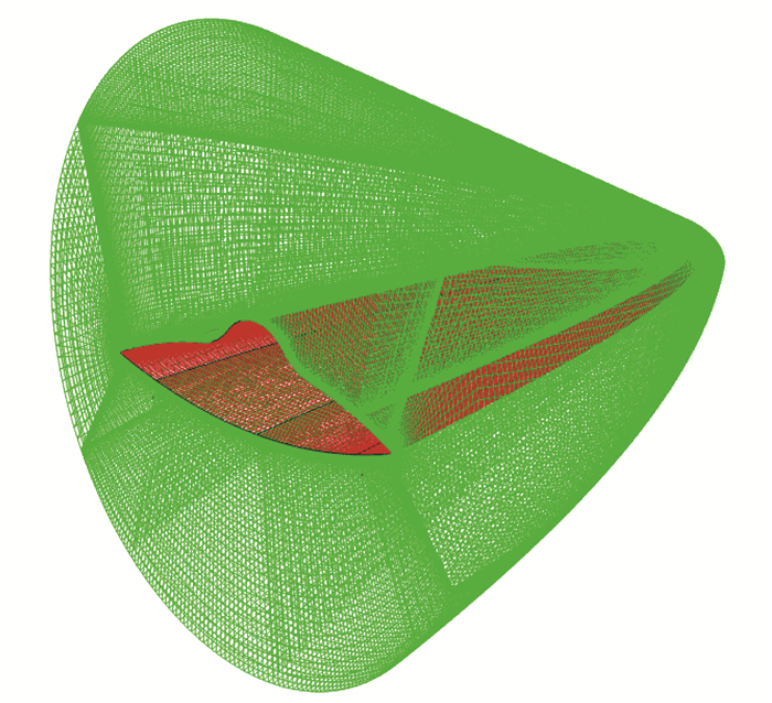 图 8 给定容积空间乘波构型计算网格 Fig.8 Computational grid of waverider |