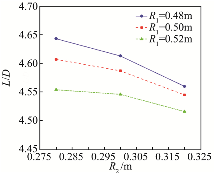 图 9 升阻比随半径变化曲线 Fig.9 L/D of waverider via radius |
