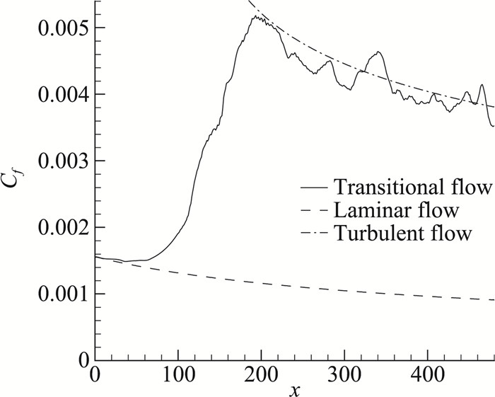 | $ {C_f} = {\tau _{\rm{w}}}/(\frac{1}{2}{\rho _\infty }U_\infty ^2) $ | (12) |