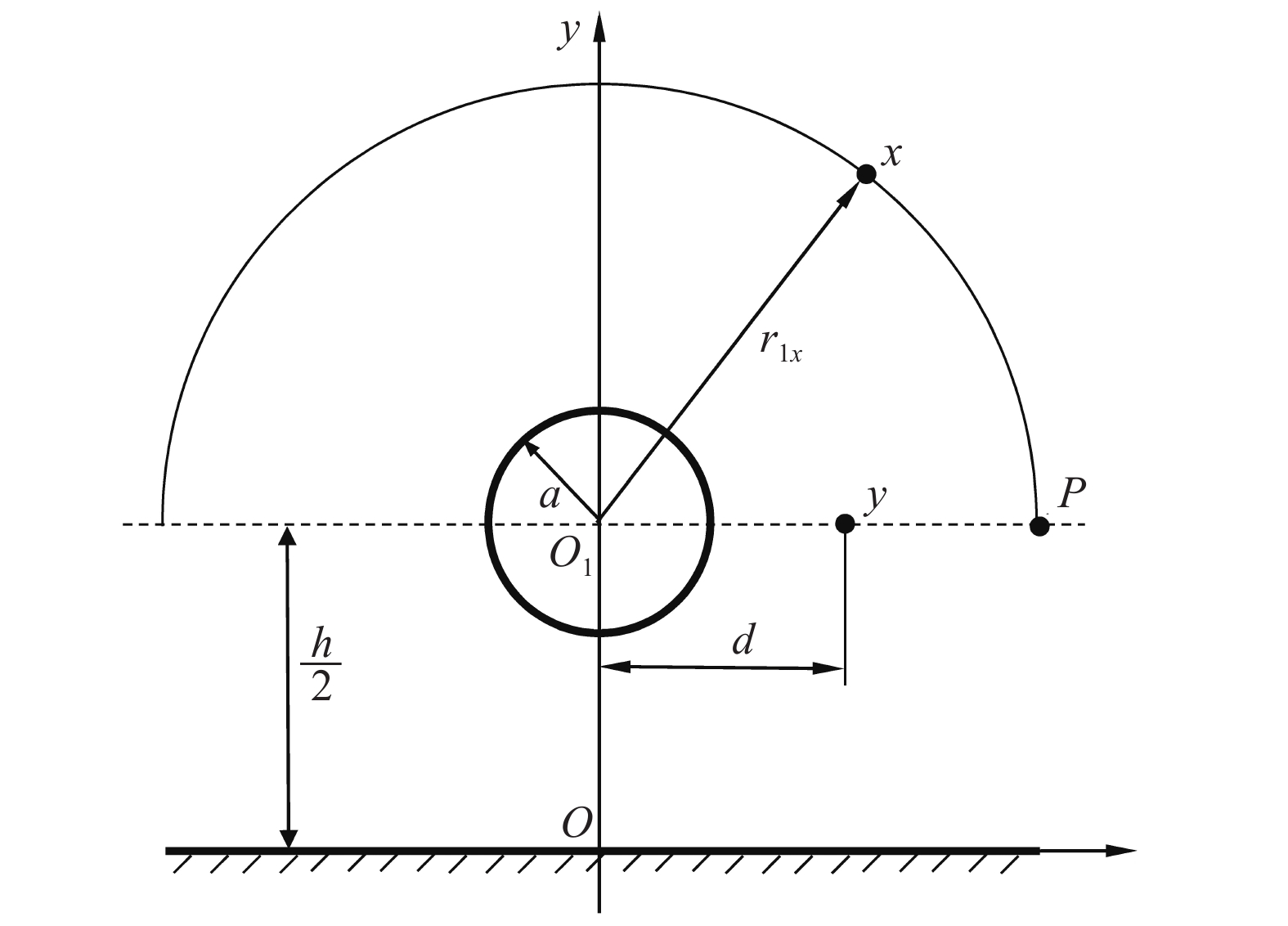 取P点为观察点,假设介质静止均匀。不考虑圆柱边界和半空间边界对声传播的影响,认为声波在全空间中自由传播,格林函数虚部
