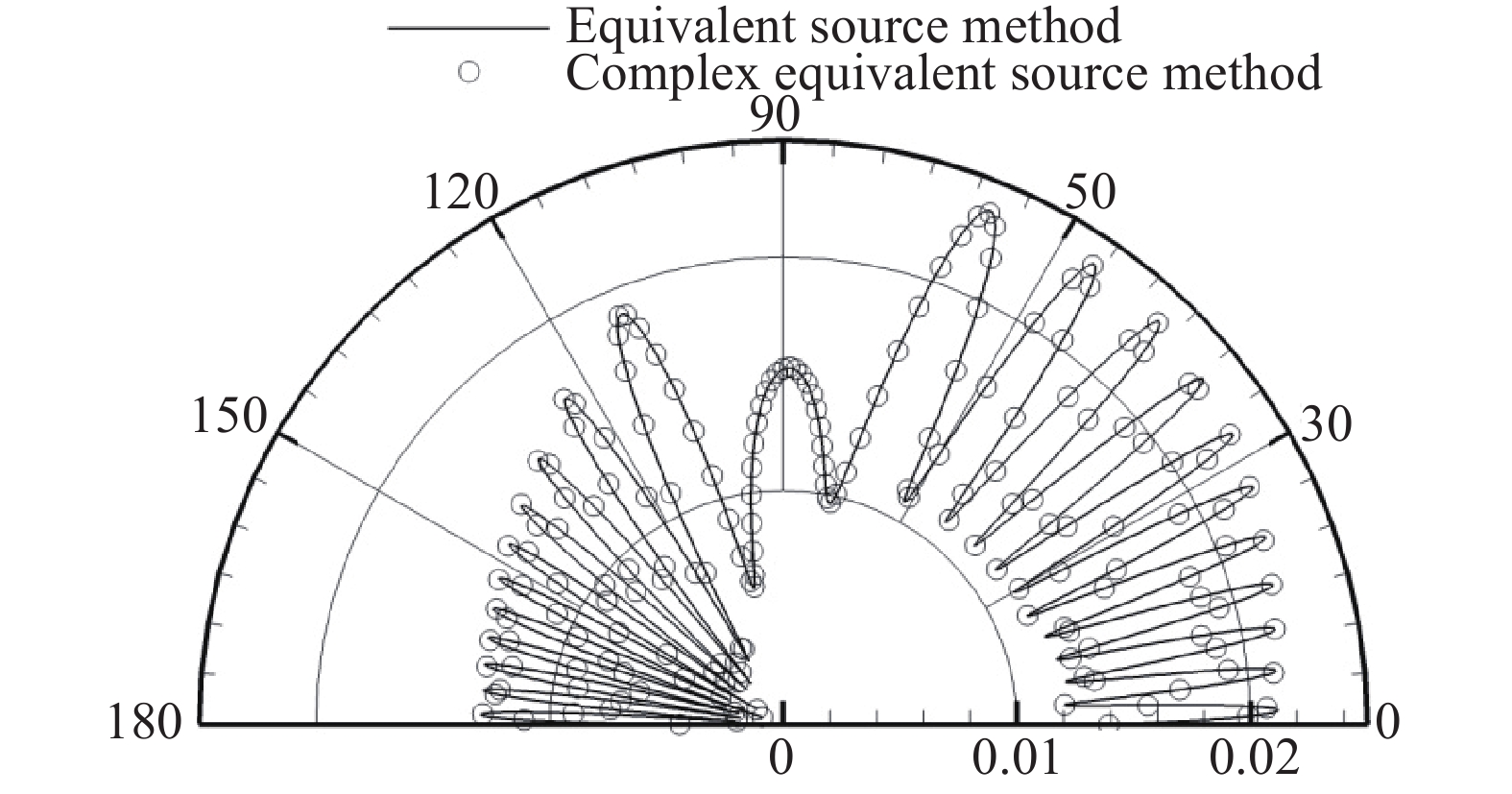 尽管本文研究的是二维声传播问题,但复等效源方法对三维声散射问题也是有效的。在后续工作中,我们将利用边界积分方程的基本解对复杂结构的气动噪声进行预测。