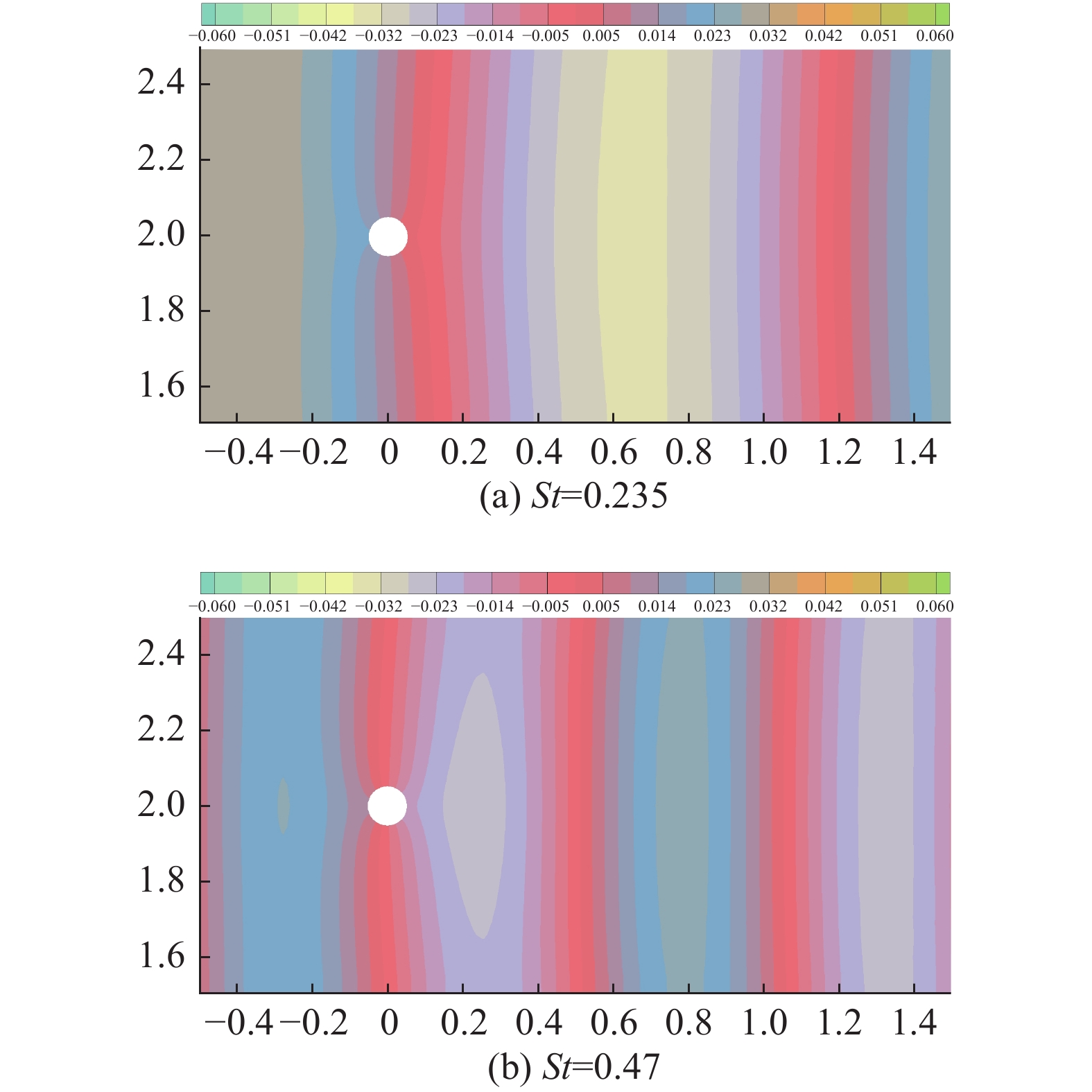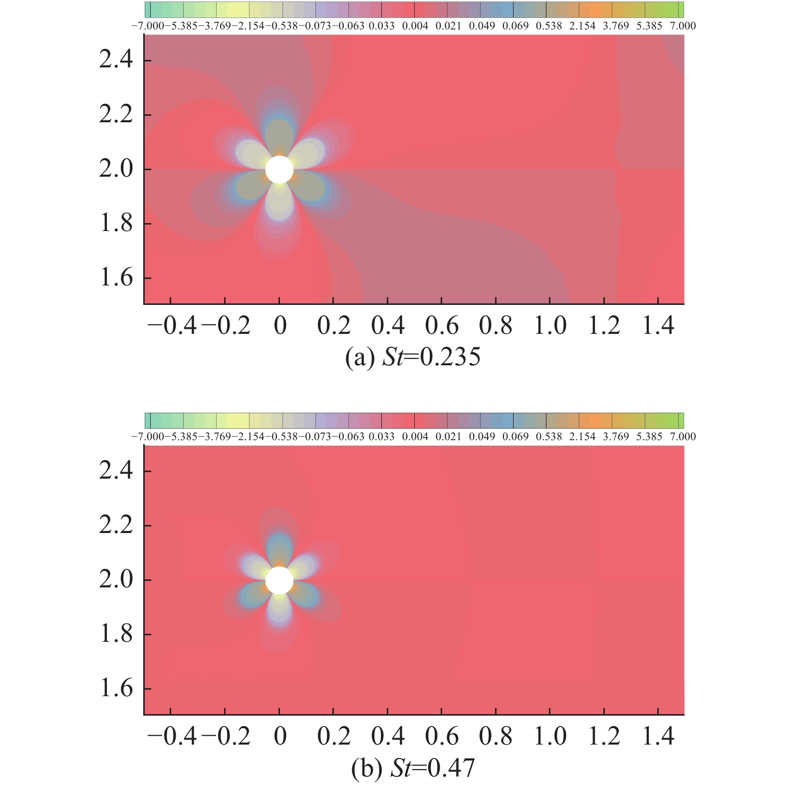 对图4所示半空间圆柱,由于圆柱距离半空间边界足够远,可忽略半空间边界对流动的影响,认为无量纲涡脱落频率仍为