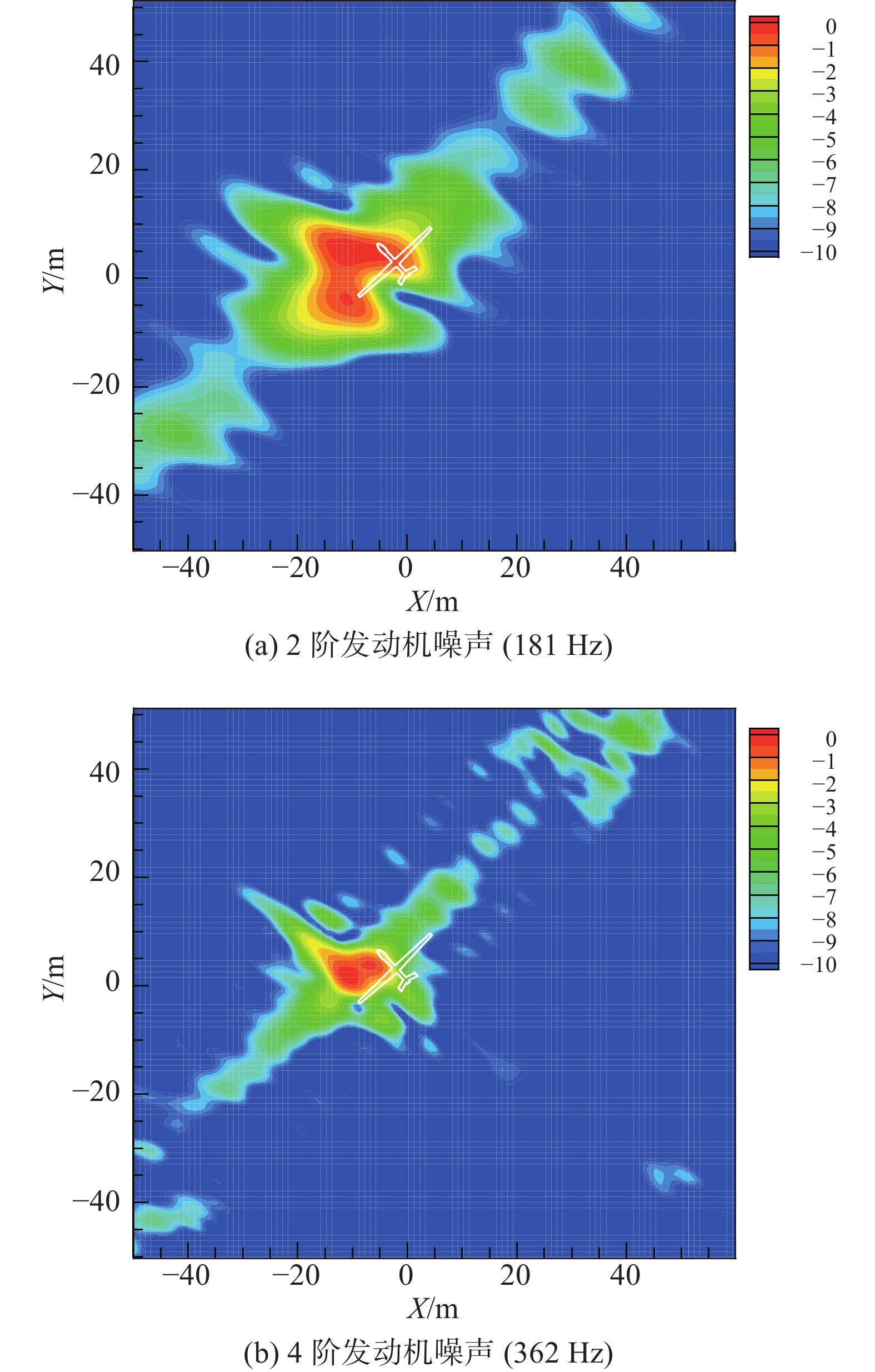 图 12 起飞过程中无人机发动机噪声源识别 Fig.12 Engine noise source identification: take-off |
