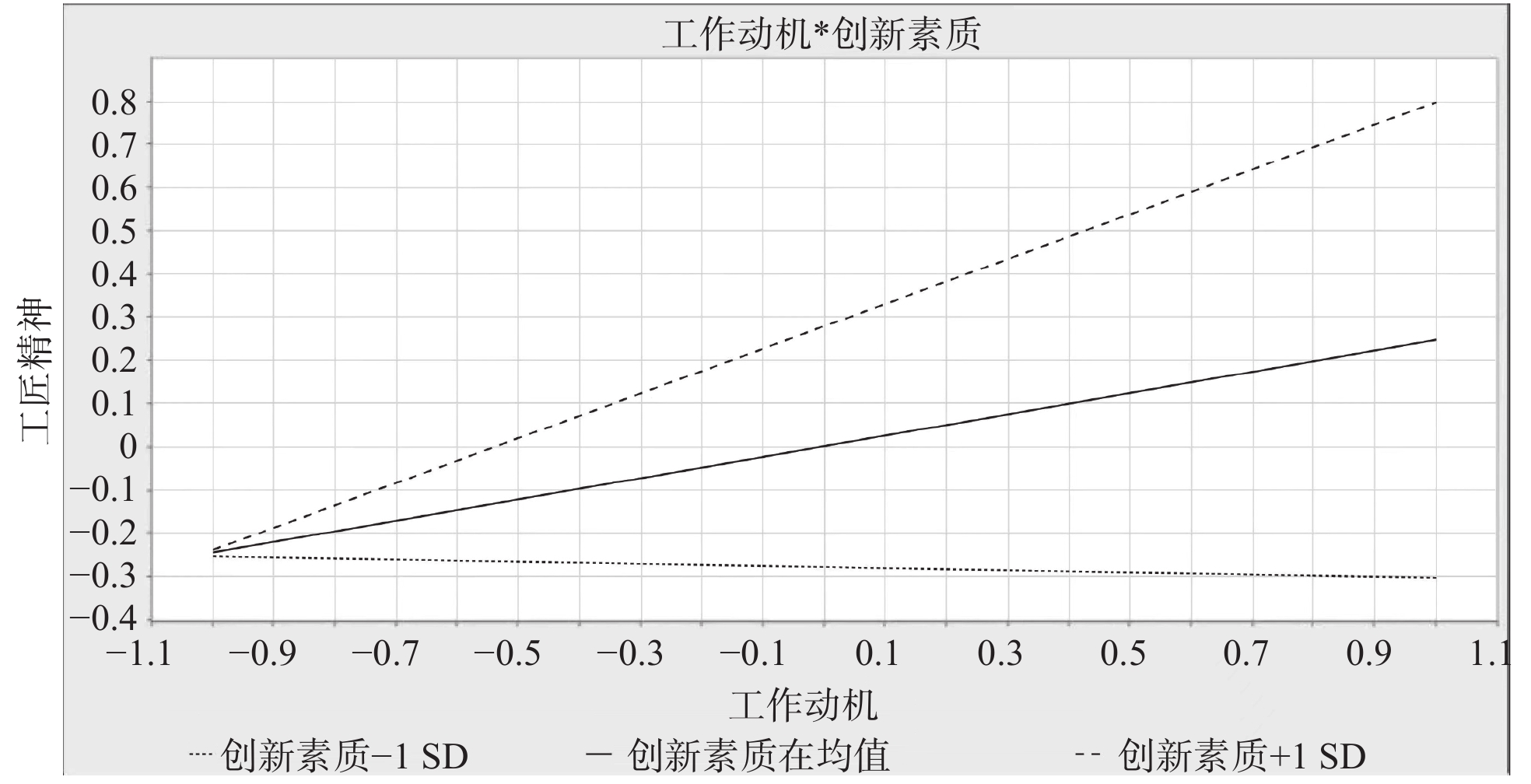 图 1 创新素质在工作动机与工匠精神之间的调节作用 |
