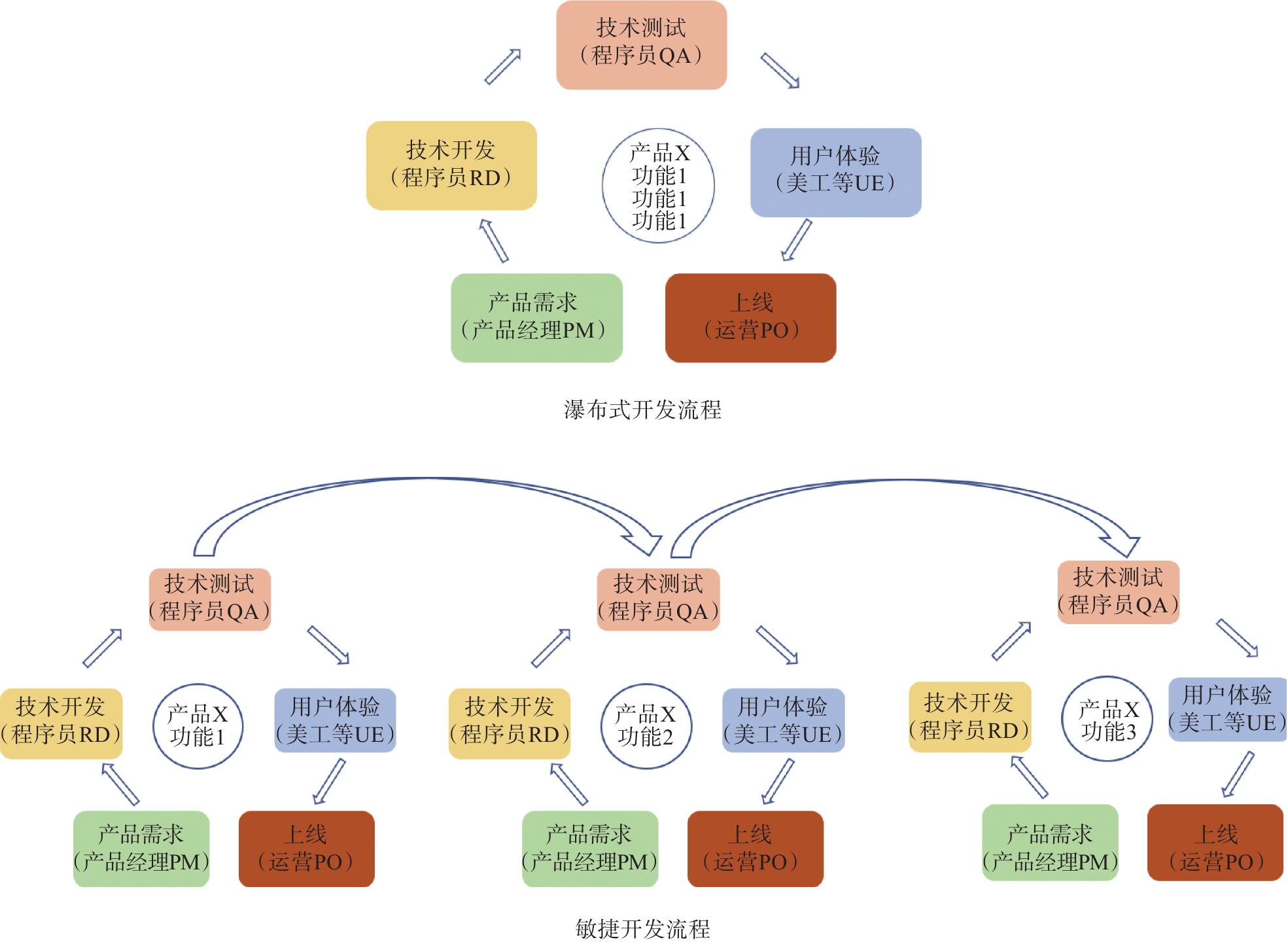 图 1 瀑布开发过程与敏捷开发过程 |