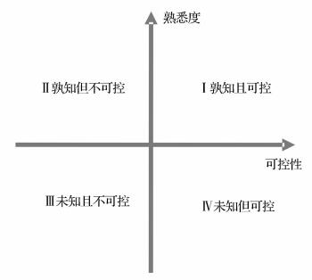 四、 专家与公众对“甲流”的风险认知差异Paul Slovic [17]认为,“可控性”及“熟悉度”是影响人们风险认知的两个重要指标,并在此基础上提出了风险认知模型。这一模型将风险分为四个主要类型,所有的健康风险都可以在其中找到自己的位置,如图 1所示:第Ⅰ类为“熟知的,可控的”风险,如烟草危害,公众对其非常熟悉,只要戒烟就能免受其害;第Ⅱ类为“未知的,却可控”的风险,如转基因食品,公众对其风险缺乏足够了解,但许多食品企业、专家都声称转基因食品本身无害,因此多数公众会采取远离或避免食用的态度来规避风险;第Ⅲ类为“熟知的,但不可控”的风险,如禽流感、艾滋病等,虽然已经为公众所熟知,一旦疫情爆发,目前有效的防控办法并不多;第Ⅳ类为“未知的,不可控”的风险,这类风险的评级最高,也越容易产生心理恐慌,不过在这种高度不确定性下,公众更有可能接受专家的知识和行为指导,如SARS这类的新发突发传染病。