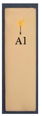 Fig. 2 Pure compound A1 collected by TLC. A1: a flaxen oily transparent liquid developed on the thin layer plate; chromogenic reagent: phosphomolybdic acid hydrate and iodine vapour |
