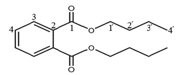 IR spectrum showed a –C–(CH2)2–CH3 group (2860.09–2959.55 cm-1 indicated νCH, 1380.59 and 1463.40 cm-1 indicated δCH3 and δCH2), an aromatic system (3070.53, 1600.09, and 742.78 cm-1), and an ester moiety (1731.80 and 1271.03 cm-1), which indicate carbonyl and phenyl functional groups. These data suggest that compound AP-Ⅰ was dibutyl phthalate. The structural formula is illustrated in Fig. 6.