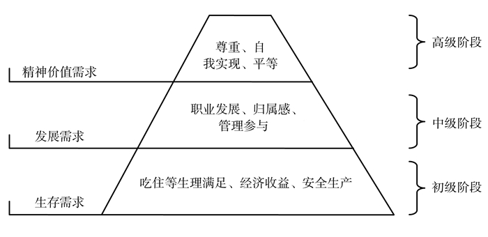 2. 发展需求与新生代农民工劳资冲突行为新生代农民工出生和成长在经济高速增长时代,大多数人自小就随父辈在城市中生活,经济条件和生活水平明显改善,更习惯于城市务工的生活方式和职业定位,对城市生活的认同感和期望值比上一辈更高。因此,他们不再只满足于最基本的生存需求,而产生了更高层次的发展诉求。这种发展需求主要包括他们对职业生涯发展的期许、对安全归属感的渴望、以及在工作场所参与管理的愿望等。这些需求主要由新生代农民工在社会结构中的角色危机和社会心理需求驱动而形成,也是他们劳资冲突行为变异的主要来源。