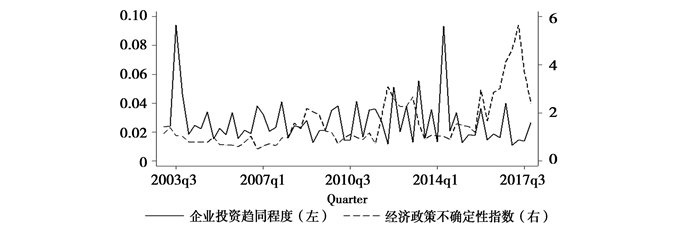 图 1 经济政策不确定性与企业投资趋同程度 |