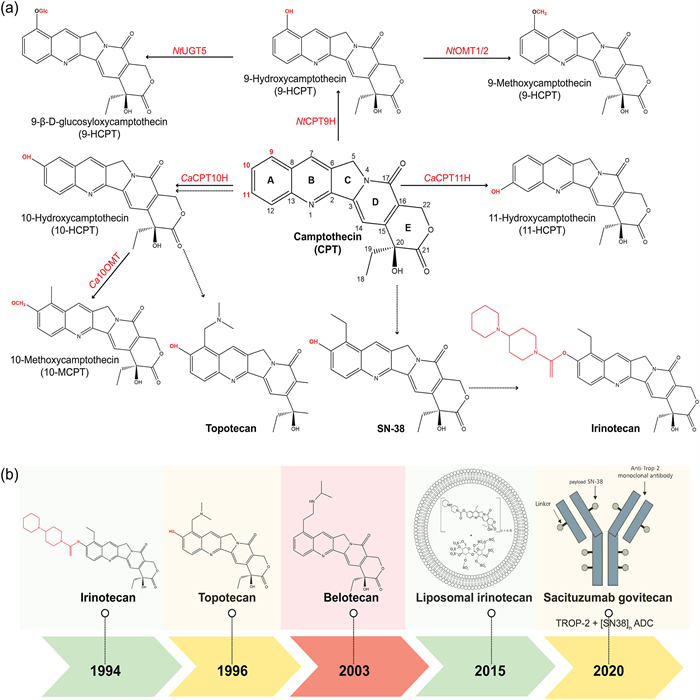 Camptothecin, commonly known as CPT, is a monoterpene pentacyclic quinoline alkaloid and one of the most valuable compounds in the pharmaceutical industry, following taxol and vinca alkaloids. It was first discovered in Camptotheca acuminata (Wall et al., 1966) and has since been identified in several other plants, including Nothapodytes nimmoniana (Govindachari and Viswanathan, 1972), Pyrenacantha klaineana (Zhou et al., 2000), Ophiorrhiza rugosa var. prostata (Gharpure et al., 2010), Chonemorpha grandiflora (Kulkarni et al., 2010), and Dysoxylum binectariferum (Jain et al., 2014), as well as in many unrelated taxa (Ramesha et al., 2013). Among these sources, Nothapodytes species, particularly the roots of N. nimmoniana, are known to have the highest concentration of CPT (Namdeo and Sharma, 2012). By inhibiting DNA topoisomerase Ⅰ, an enzyme essential for DNA replication and repair, CPT disrupts crucial cellular functions, thereby enhancing its anticancer potential (Hsiang et al., 1985).