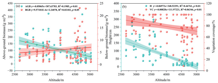 | Note: AGB, above-ground biomass; BGB, below-ground biomass; H, height; VC, vegetation coverage. The same conventions are adopted below. | ||||