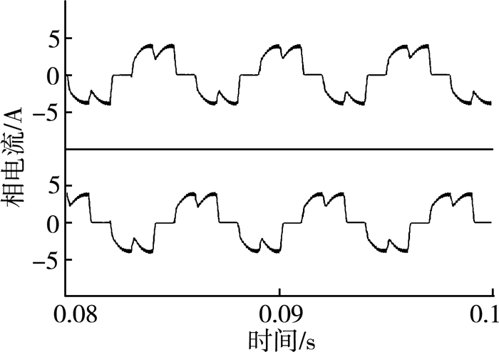 从图 4中可以看出:单相电流的波形比较趋近于方波,电流脉动较小(换言之,其转矩脉动也较小)。验证了设计的BUCK变换器能够有效地减小转矩脉动。