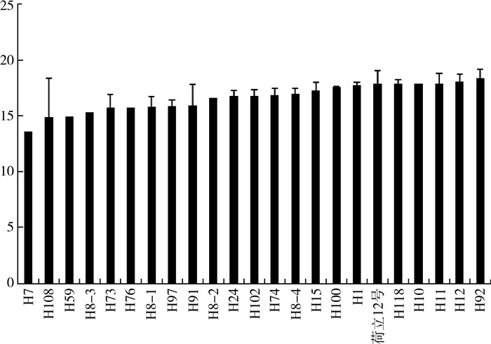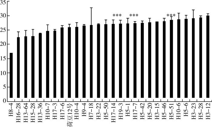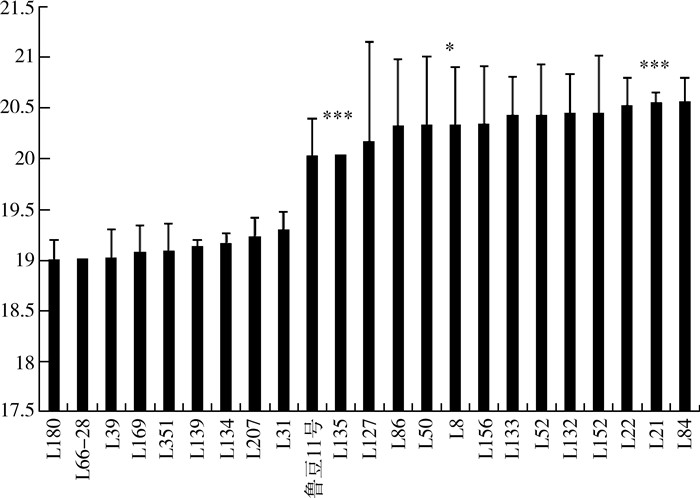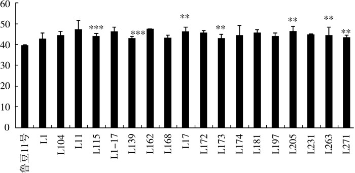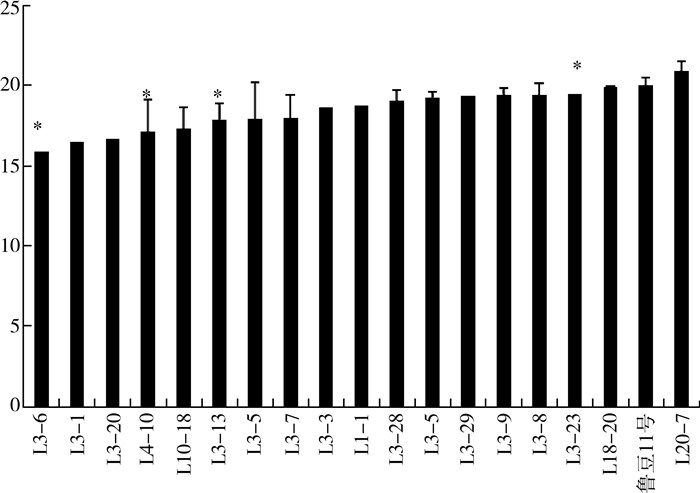 | 图 7 “鲁豆11号”M5代突变体籽粒中粗脂肪(干基)含量测定/% |