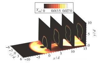 | 图 14 多截面OH分布云图 Fig.14 Image of OH mass fraction on normal and spanwise planes |