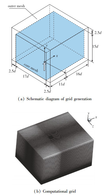 | 图 2 计算域网格示意图 Fig.2 Sketch of the computational domain and grid |