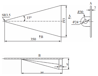 | 图 2 平板三角翼模型设计图 Fig.2 Delta wing model scheme |