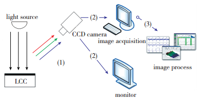通过计算机对图像采集设备进行监测和控制, 可以实时地观测液晶涂层的颜色变化, 并对采集设备进行相应的调整.每次实验时, 利用Macbeth彩色板对照明图像采集系统进行标定, 将色彩误差控制在一定范围内.实验完成后, 将获得的图像输入到计算机, 用于图像的后处理.