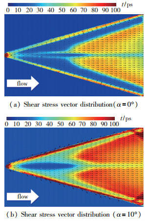 | 图 7 三角翼表面剪切应力矢量分布图 Fig.7 Shear stress vector distributions of delta wing model |