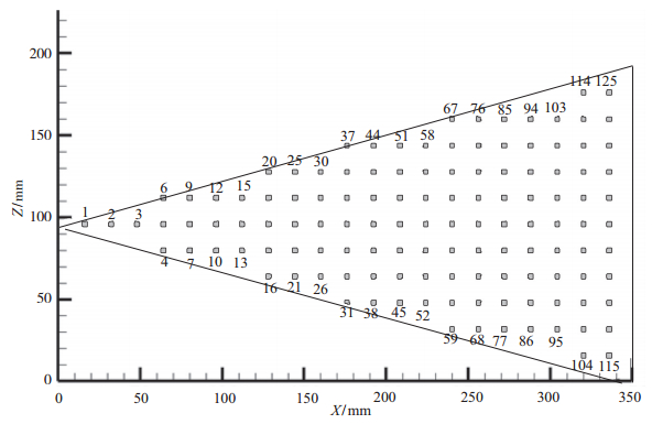 Z:数据点在模型宽度方向的坐标, 以图 7中模型下侧为0, 向上为正, 单位为mm;
