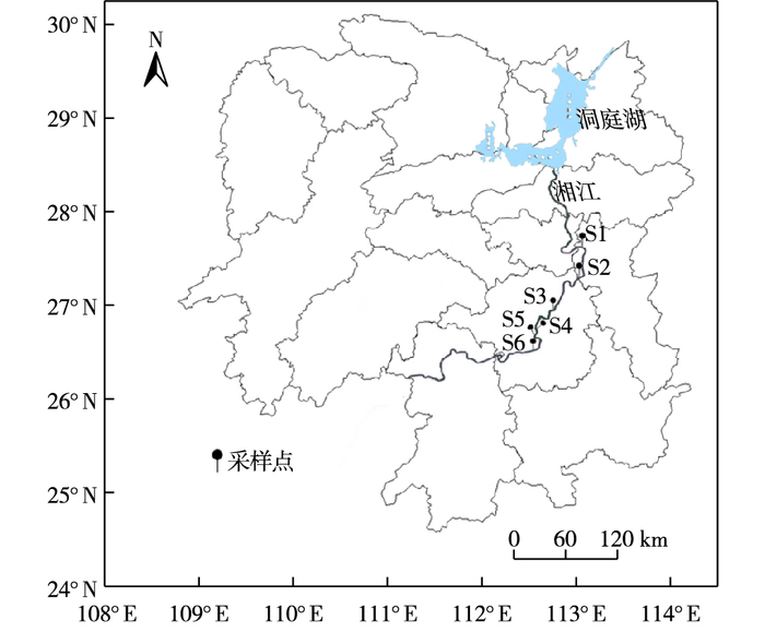 图 1 湘江沉积物采样点分布 Figure 1 Distribution map of the sediment sampling sites along Xiangjiang River S1~S6采样点分别位于霞湾镇、淦田镇、霞流镇、东洲岛、车江镇、松柏镇。 |