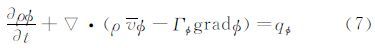 控制方程为低速粘流的时均N-S方程,取其通用形式为