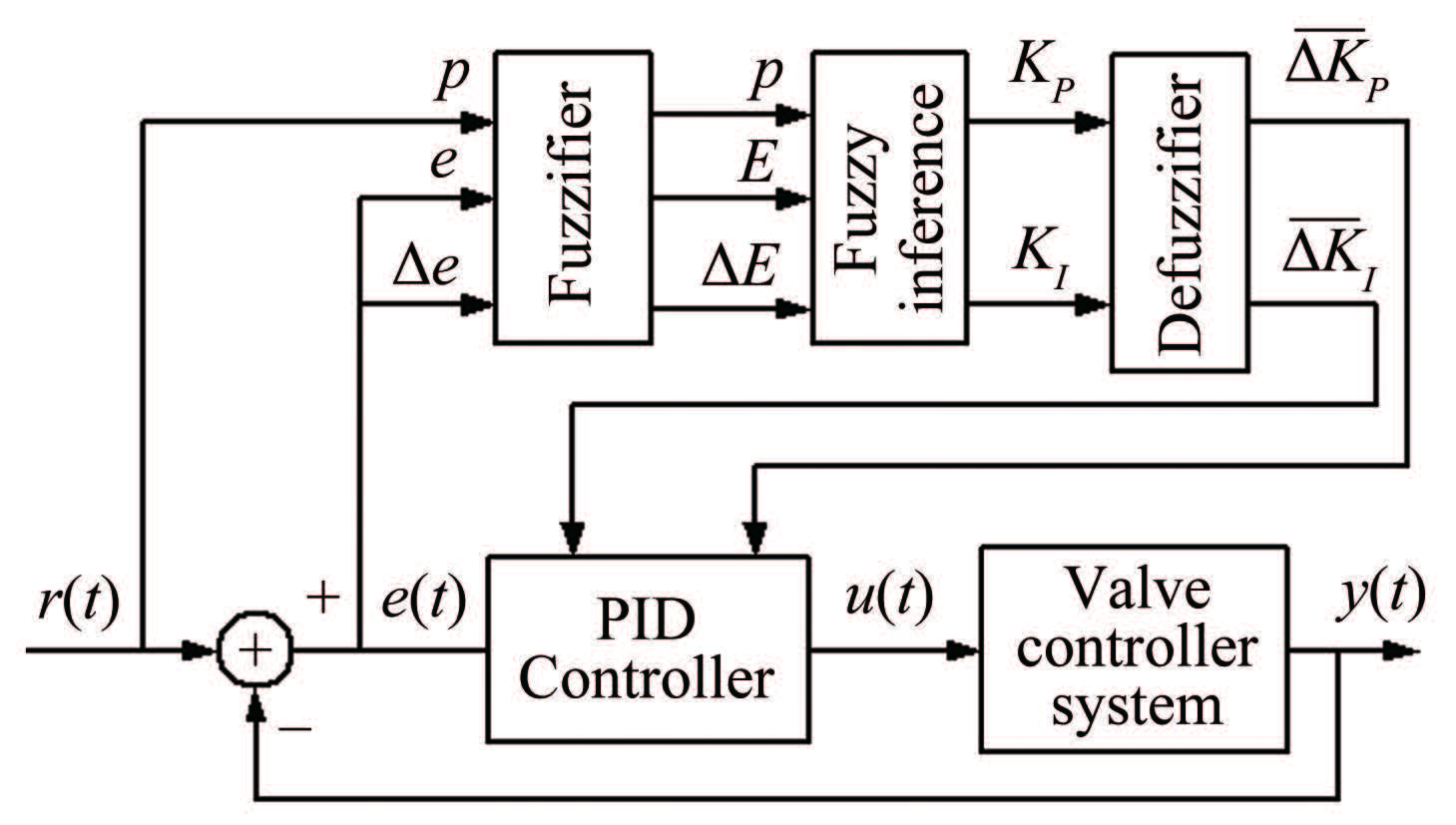 | 图 3分段变参数加模糊PID控制框图 Fig.3Block diagram of valve control system using segmented parameter and fuzzy PID |