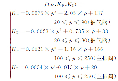 调试过程先摸索出不同压力区间段的大体P、I参数,同时为防止控制输出突跳,将控制参数进行拟合处理后再作为模块控制的输入,见式7。