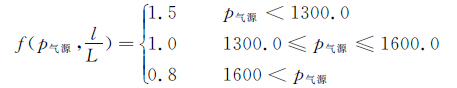 由于连续式风洞有大量用于气密封的空气往洞内泄露,因此常压时采用气密封漏气加排气阀调节的方式(进气阀关闭);而在增压时尤其高目标压力段,当压力欠压时,若仅通过气密封漏气的方式进行补气则速度过慢,需通过进气阀门对风洞进行补气,调试时为尽量减少气源压力波动对总压控制的影响,结合阀门性能曲线,减少气源消耗,进气阀以一个相对固定的进气量往风洞灌气,进气阀预置开度与气源压力和目标压力满足下列函数关系: