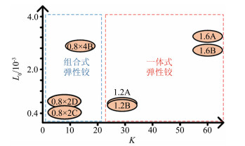 由表 2和图 4中的结果可以看到,组合式弹性铰链的性质与一体式弹性铰链相似:弹性梁厚度和片数一致时,其自身结构的基本性质决定了其机械阻尼维持在一个稳定的量级。同样,弹性梁的刚度系数越大,L0就越大。