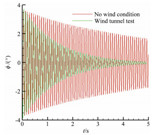| 图 4 自由振动滚转阻尼导数试验机械阻尼特性 Fig.4 Mechanical damping characteristics of wind-tunnel free-oscillation experiment |
