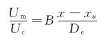 式中:B为速度衰减率,De为喷嘴的等效直径,xu为轴线绝对位置的零点。