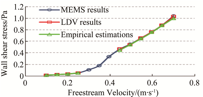 通过激光多普勒测速仪(LDV)获得平板上的边界层速度剖面,利用速度剖面法间接计算出平板上的壁面剪应力值来对比验证MEMS测量结果。