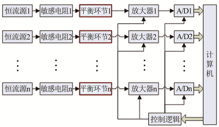 | 图 3 热膜式传感器阵列数据采集框图(加平衡环节) Fig.3 Data acquisition diagram of hot-film sensor array(with the OBS) |