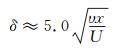 而基于边界层厚度的雷诺数和基于流动距离的雷诺数有如下关系: