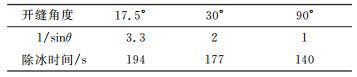 2.3 3种开缝角度除冰采取3种合成热射流开缝角度在-15℃条件下进行了实验,得到的除冰时间如表 3所示。