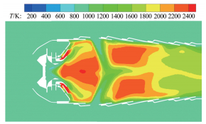 | Fig.13 Contour of temperature in combustor 图 13 燃烧室温度云图 |