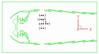 | Fig.5 Schematic diagram for CARS measurement location of temperature in the zone near the primary air jet holes 图 5 航空发动机主燃孔附近CARS测温位置示意图 |