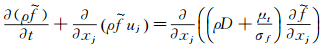 1 Physical and mathematical models 1.1 Transport equations of mixture fraction and mixture fraction varianceThe transport equation of the mean mixture fraction