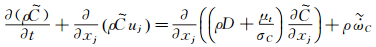The transport equation of the progress variable is as follows: