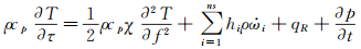where ρ, τ, T, p and cp refer to the density, time, temperature, pressure and specific heat capacity respectively; Yi,