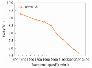 | 图 6 功率载荷随转速变化 Fig.6 Power Loading (PL) vs. Rotational speed |