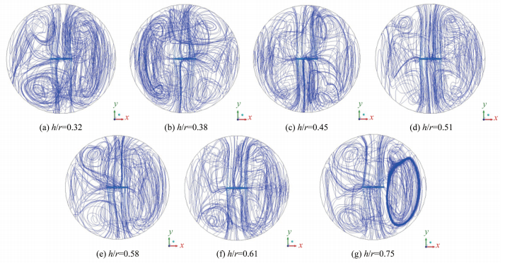 | 图 9 径向流线分布 Fig.9 Streamline distribution of flow field in the x-y plane |