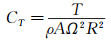 式中:CT为拉力系数;CP为功率系数;Ω为转速。其中,拉力系数和功率系数分别定义如下: