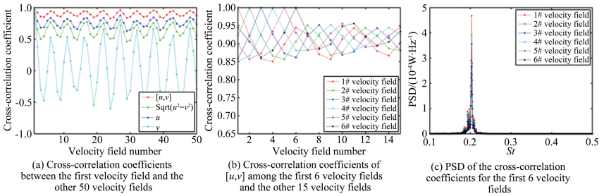 | 图 6 速度场之间的相关性分析 Fig.6 Cross-correlation analysis of the velocity fields |