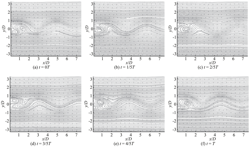 | 图 7 相位平均流线图 Fig.7 Phase-averaged streamlines |