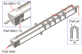 高速流动条件下的碳氢燃料点火和火焰稳定是超燃冲压发动机燃烧室的重要关键技术[1],在毫秒级的驻留时间内实现有效掺混、点火和火焰稳定是发动机燃烧室的关键问题[2-4]。